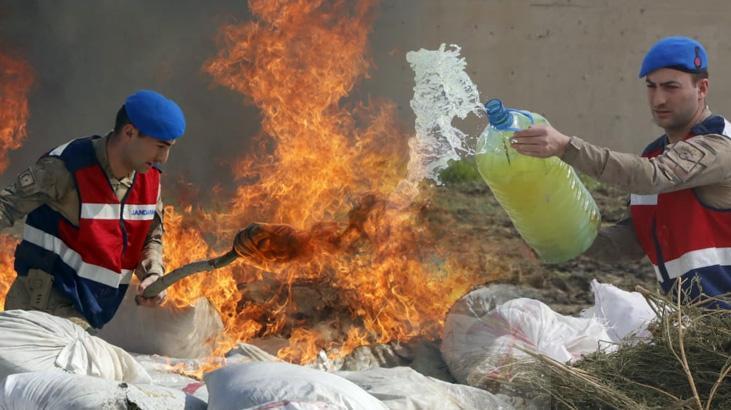 Piyasa bedeli 10 milyar lirayı bulan uyuşturucu unsurlar Diyarbakır Valiliği’nce oluşturulan heyet huzurunda Lice İlçe Jandarma Komutanlığı uyuşturucu husus imha alanında yakılarak imha edildi. Uyuşturucu unsurların imhası için 200 litre mazot kullanıldı.