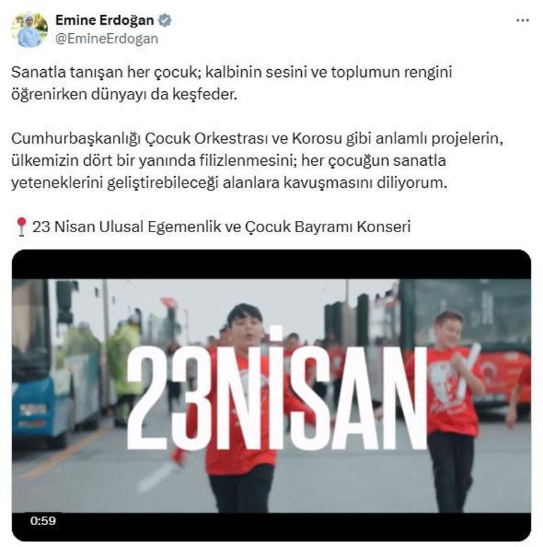Cumhurbaşkanı Recep Tayyip Erdoğan’ın eşi Emine Erdoğan toplumsal medya hesabından yaptığı paylaşımda, “Sanatla tanışan her çocuk, kalbinin sesini ve toplumun rengini öğrenirken, dünyayı da keşfeder. Cumhurbaşkanlığı Çocuk Orkestrası ve Korosu üzere manalı projelerin, ülkemizin dört bir yanında filizlenmesini, her çocuğun sanatla yeteneklerini geliştirebileceği alanlara kavuşmasını diliyorum.” tabirlerine yer verdi.