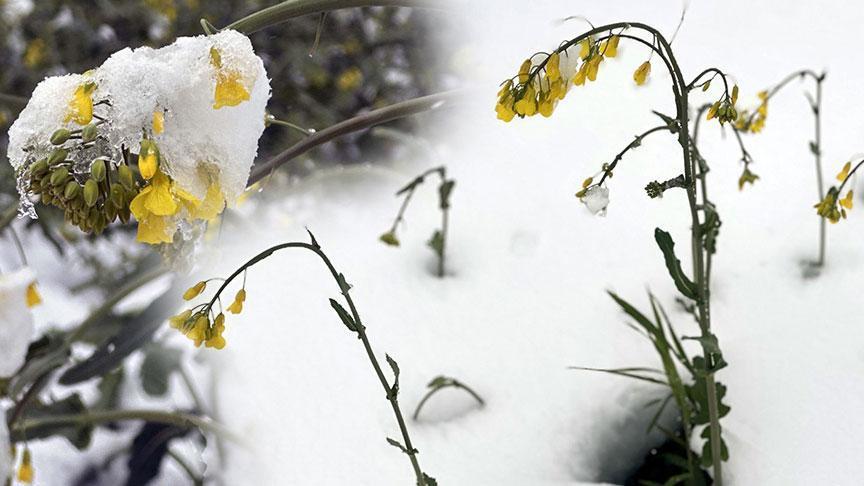 Trakya’nın yüksek kısımlarına 8 Nisan’da kar yağdı, geceleri hava sıcaklığı mevsim normallerinin 8-10 derece altına düştü. Bölgede eksi derecelere düşen sıcaklık nedeniyle zirai don yaşandı. Son günlerde Trakya tarlalarını sarıya boyayan ve çiftçinin ‘sarı altın çiçek’ olarak isimlendirdiği ve ayçiçeğine alternatif olarak ekilen kanolalar kar altında kaldı. Üretici kanaloda zirai don tasası yaşarken, kanola boynunu aşağıya gerçek büküp çiçeklerini dondan korudu.