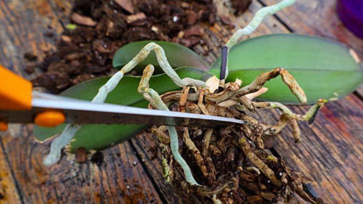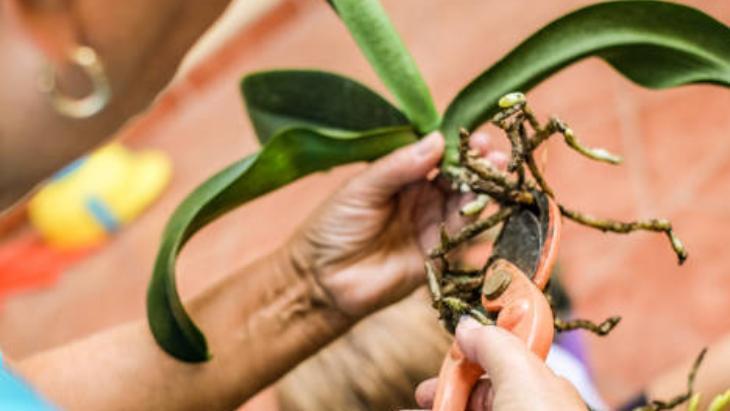 Kuruyan ve çiçekleri dökülen orkide bitkisini belirleyip tıpkı budamada yaptığınız üzere boğumlarını sayın. Kök kısmından üst hakikat 3’üncü boğuma geldiğinizde, bu boğumun 1,5 ila 2 santimetre kadar üzerini işaretleyin.